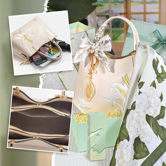 🌸Muttertagsrabatt 50%🌸Elegante bestickte Lilienhandtasche für Frauen Geschenkbox