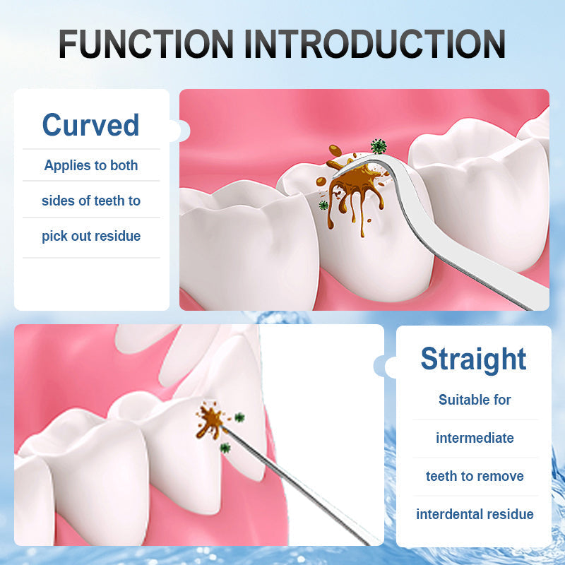 EFFEKTIVE LEISTUNG: Dieses vielseitige Werkzeug verfügt sowohl über gebogene als auch gerade Zahnstocher und ermöglicht eine präzise und gründliche Zahnreinigung in einem kompakten Design. Es eignet sich perfekt für unterwegs und sorgt jederzeit und überall für optimale Mundhygiene. Damit ist es ein unverzichtbares Werkzeug für Reisen, Arbeit oder die tägliche Pflege.