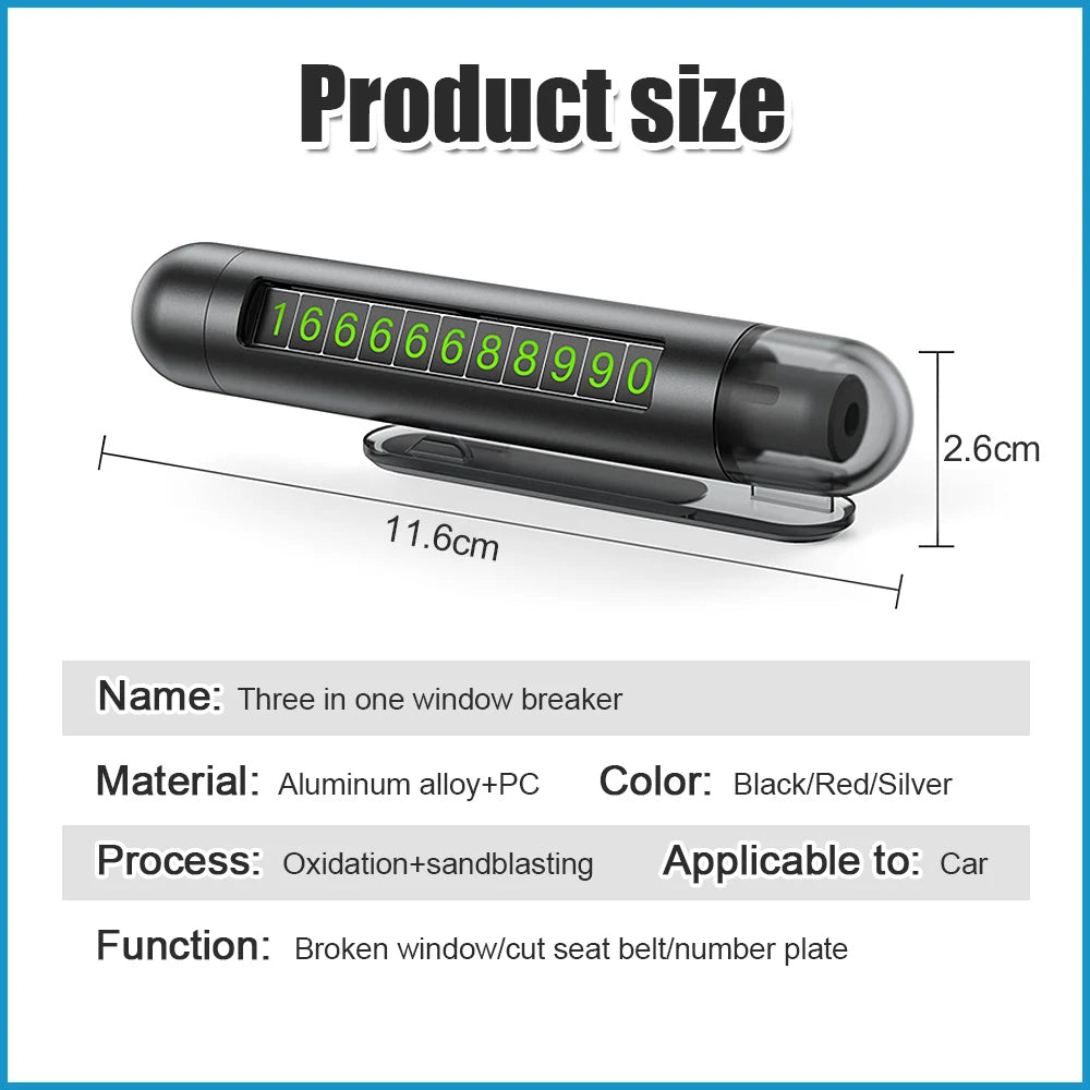 Vielseitige Werkzeuge: 4-in-1-Lösungen mit Nummernschild, Nothammer, Gurtschneider und Taschenlampe. Machen Sie sich mit Ihrer Notfallausrüstung vertraut, fahren Sie sicher und verbessern Sie Ihr Fahrerlebnis.
