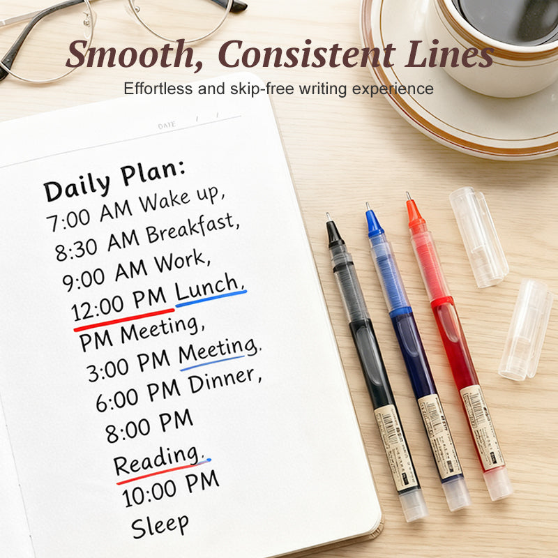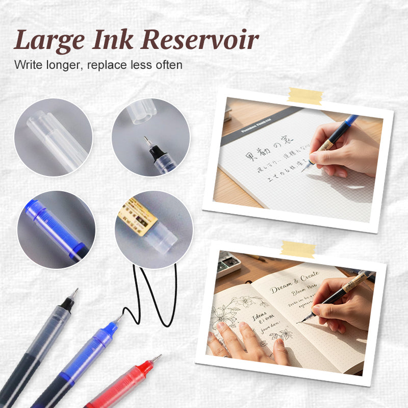 GROSSE TINTENKAPAZITÄT – Das Direktflüssigkeitssystem fasst deutlich mehr Tinte als herkömmliche Stifte. So können Sie länger ohne Unterbrechung schreiben, was sich perfekt für ausgiebige Lernsitzungen, Besprechungen oder Tagebuchmarathons eignet.