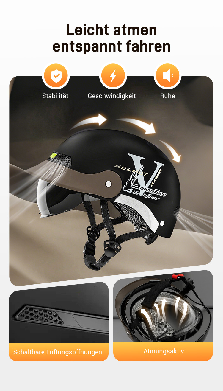 🛡️Atmungsaktiver, leichter und stoßfester Motorradhelm