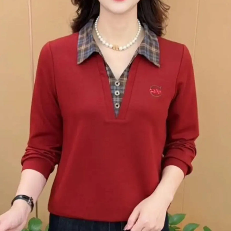 MÜHELOSER LAYERED-STIL – Kreieren Sie ein schickes Outfit im Lagenlook, ohne zwei Kleidungsstücke übereinander tragen zu müssen. Dieses zweiteilige Oberteil im Fake-Look kombiniert den Look eines karierten Hemdkragens mit einem weichen, langärmeligen Strickteil und verleiht Ihnen in Sekundenschnelle einen eleganten Stil.