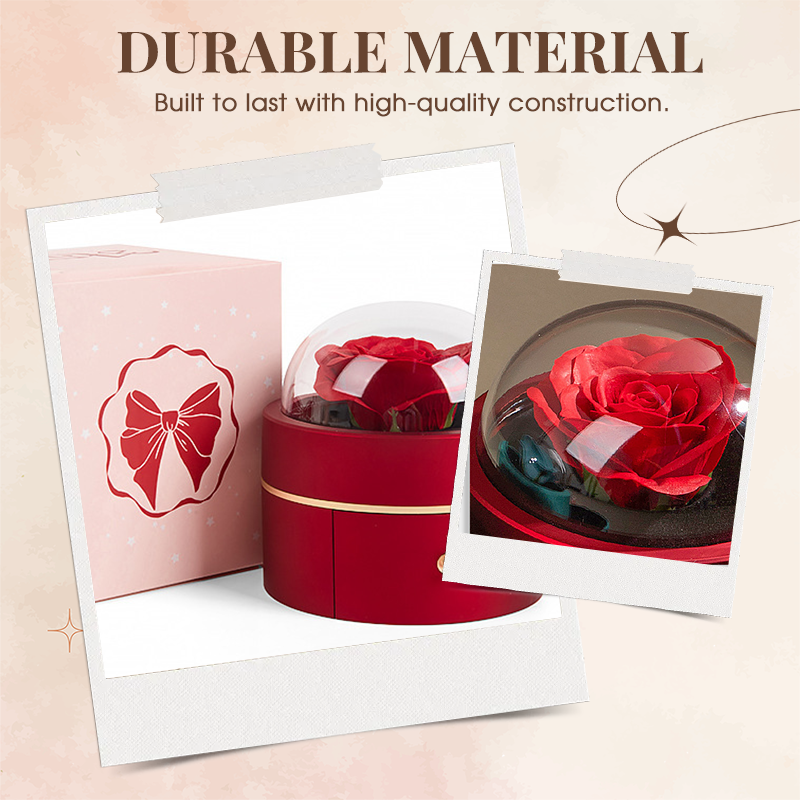 LANGLEBIGE KONSTRUKTION: Die aus hochwertigem Acryl und Kunststoff gefertigte Schmuckschatulle „Eternal Rose“ ist auf Langlebigkeit ausgelegt. Dank ihrer robusten Konstruktion hält sie dem täglichen Gebrauch stand und behält dabei ihre Schönheit über lange Zeit. Dank dieser Langlebigkeit können Sie sich viele Jahre lang an Ihrer Schmuckschatulle erfreuen, ohne sich Gedanken über Abnutzungserscheinungen machen zu müs