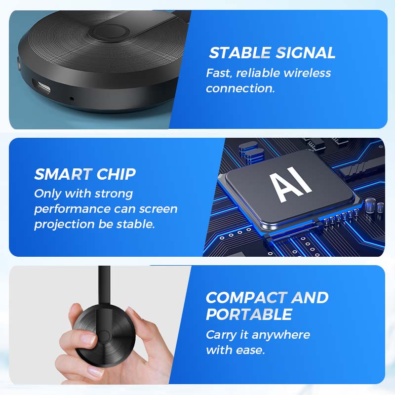 KEINE VERZÖGERUNGEN, KEIN BUFFERING – Genießen Sie nahtloses, verzögerungsfreies Screen Mirroring. Ob für Videoanrufe, Präsentationen oder Streaming – der HD-Adapter sorgt für eine flüssige, verzögerungsfreie Anzeige in 1080P- oder 4K-Auflösung und bringt jedes Detail scharf in den Fokus.