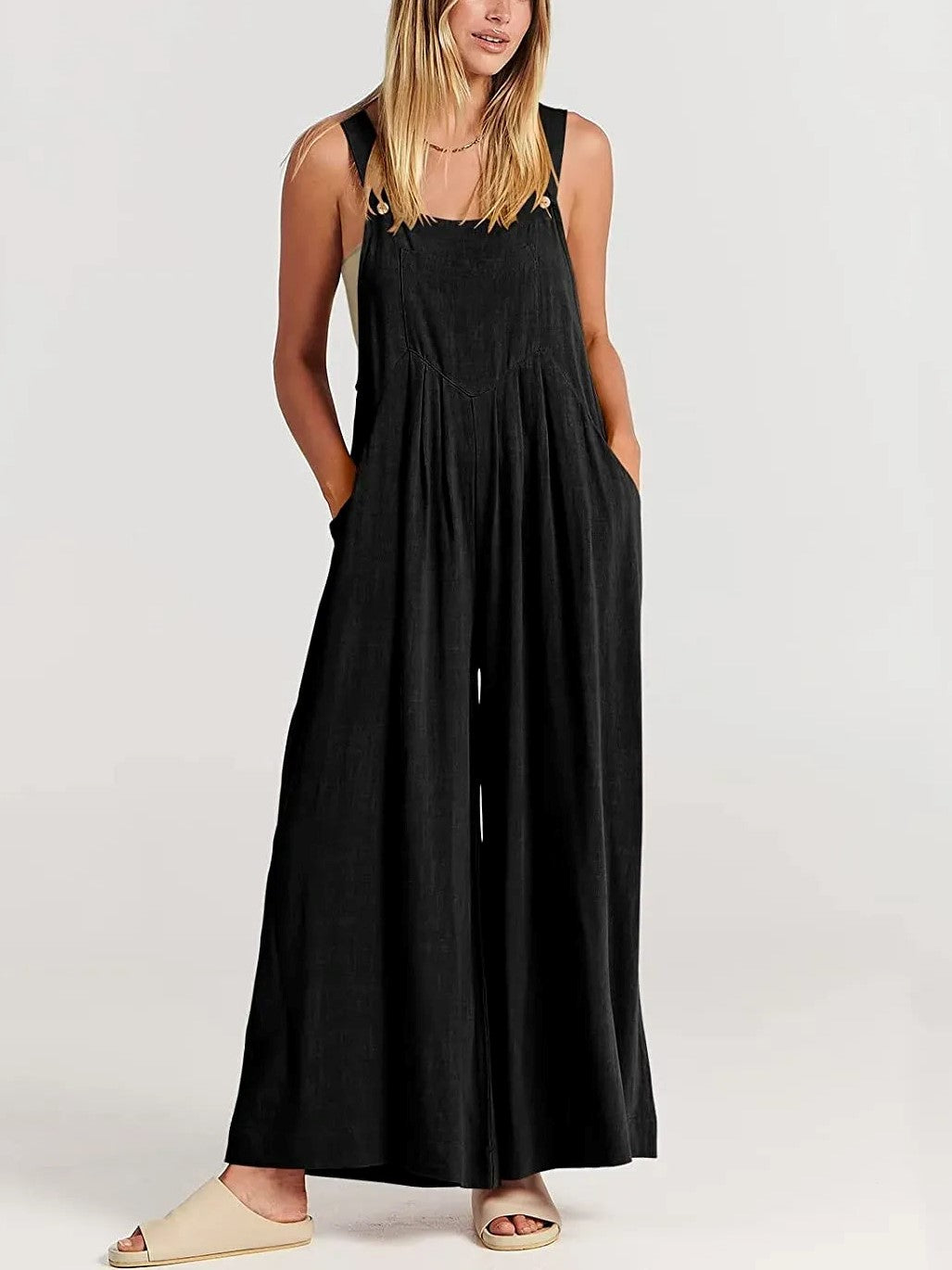 Dieser Overall ist mit verstellbaren Schulterträgern, Knopfdetails, ärmellosem Stil, quadratischem Ausschnitt, Taschen, weiten Hosenbeinen und einer lockeren, lässigen Passform ausgestattet.💕