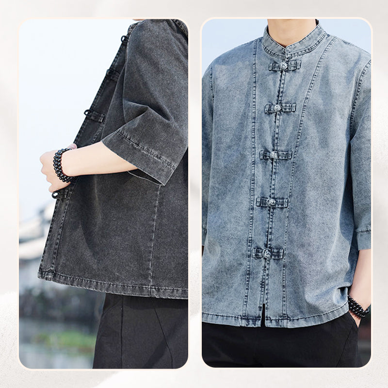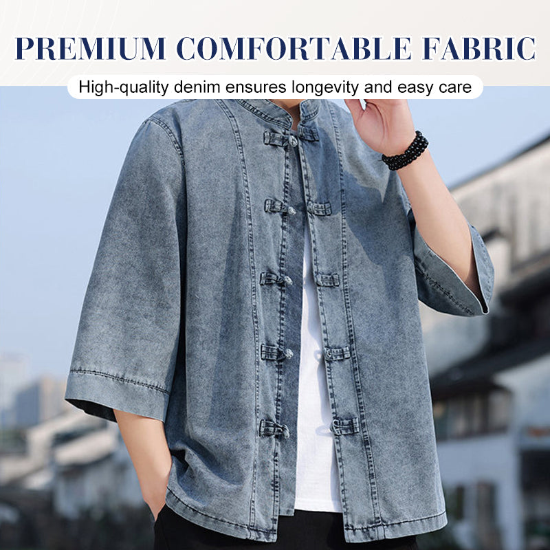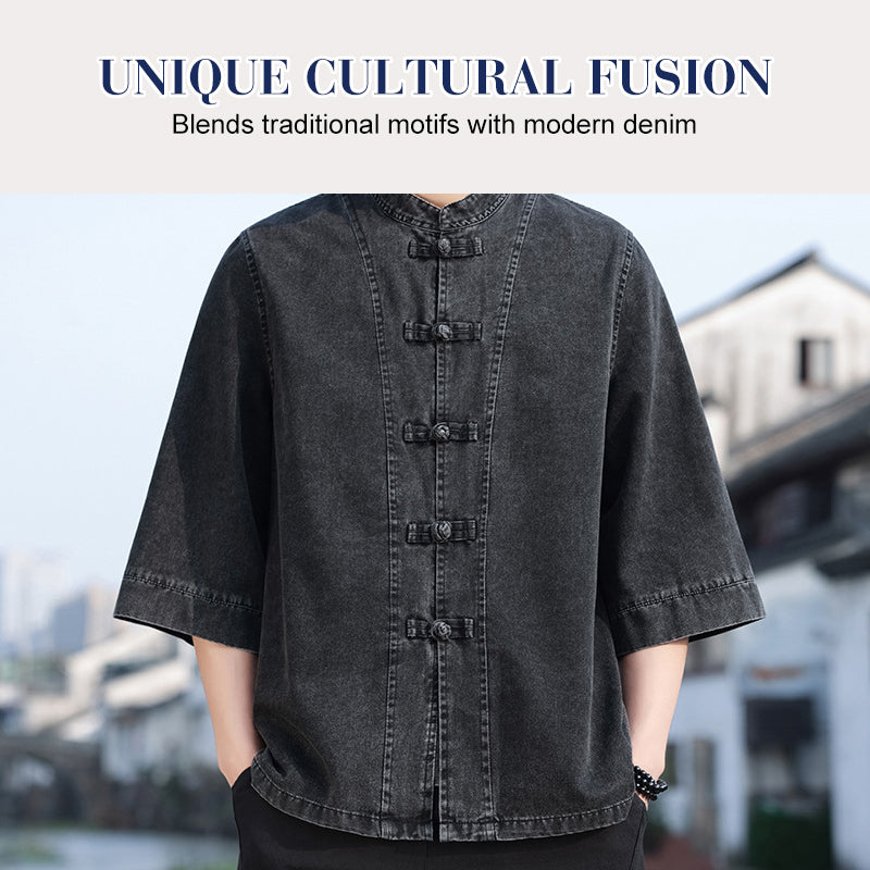 EINZIGARTIGES DESIGN: Dieses zweiteilige Set kombiniert kunstvoll klassische chinesische Designmotive mit zeitgenössischer Denim-Freizeitkleidung und schafft so einen unverwechselbaren und raffinierten Look, der sowohl die Tradition respektiert als auch entschieden modern ist.