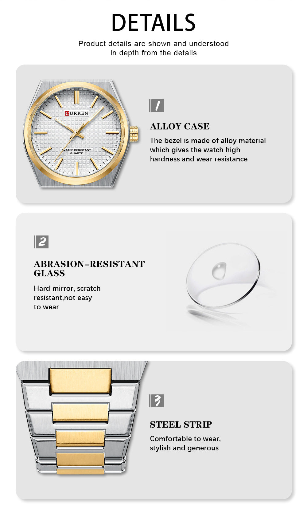 WASSERBESTÄNDIGES DESIGN - Diese Uhr ist bis zu 30 m wasserdicht und eignet sich somit für das tägliche Tragen, auch zum Händewaschen oder für leichte Wasserspritzer, ohne Kompromisse bei Qualität und Funktion einzugehen.