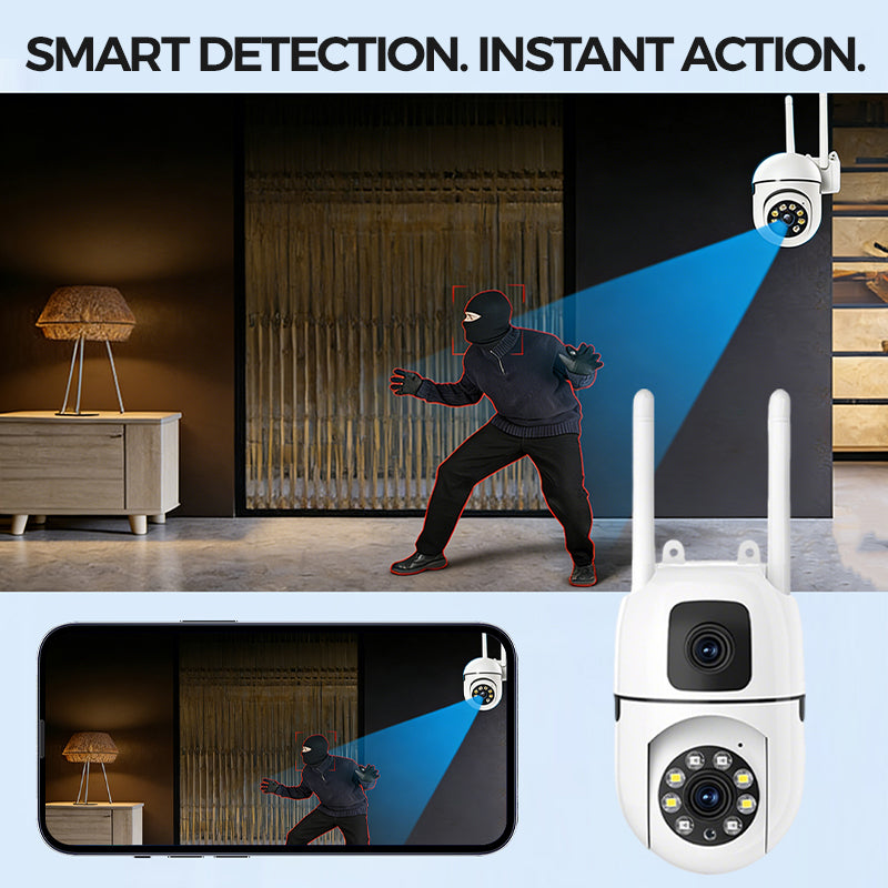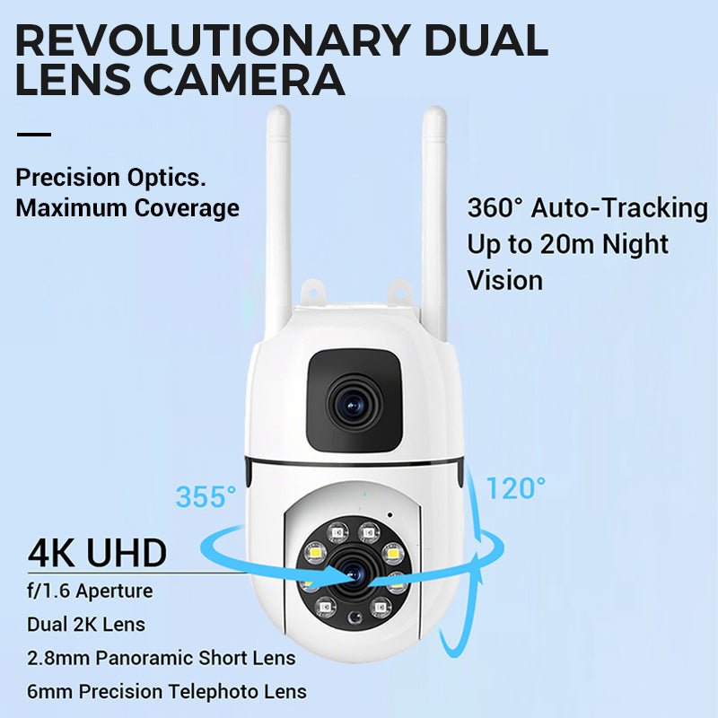 360° Schwenk-Neige 4K Dual-Linsen Sicherheitskamera – Outdoor WLAN Überwachungskamera