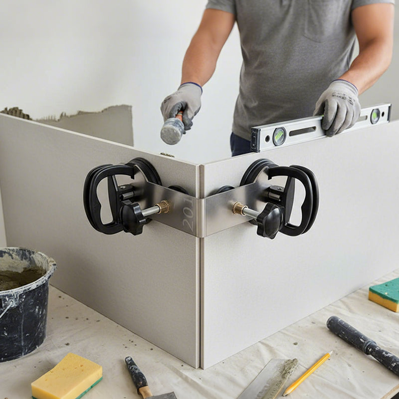 STARKE SAUGKRAFT FÜR STABILITÄT: Ausgestattet mit leistungsstarken Saugnäpfen haftet dieses Werkzeug sicher auf glatten Oberflächen wie Glas, Keramik, Porzellan und Marmor und verhindert so ein Verrutschen der Fliesen während der Arbeit. Die Saugkraft sorgt für einen festen, sicheren Halt während des gesamten Verlegevorgangs.