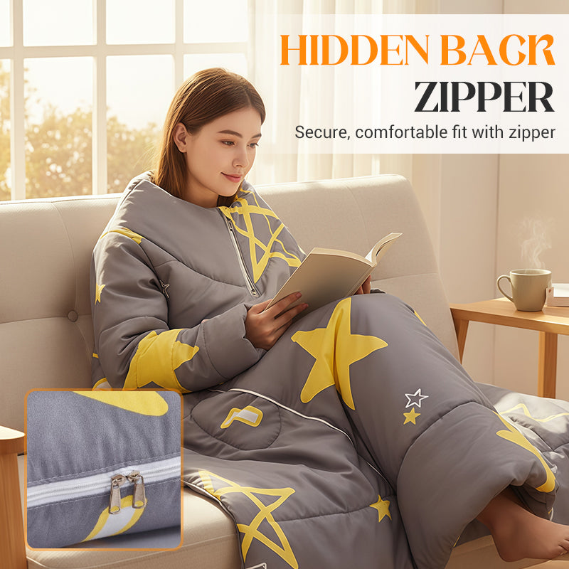 MIT ÄRMELN UND VERSTECKTER RÜCKENREISSVERSCHLUSS TRAGBAR: Bleiben Sie warm und gemütlich mit dem einzigartigen tragbaren Design. Der versteckte Reißverschluss am Rücken sorgt für eine bequeme Passform und bietet 360° Wärme und Komfort zum Entspannen oder Relaxen.