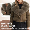 LIEFERUMFANG: 1 * Damen kurze, modische und warme Jacke mit Kunstfellkragen