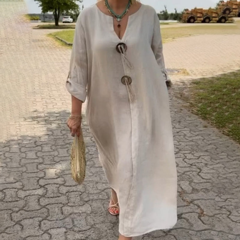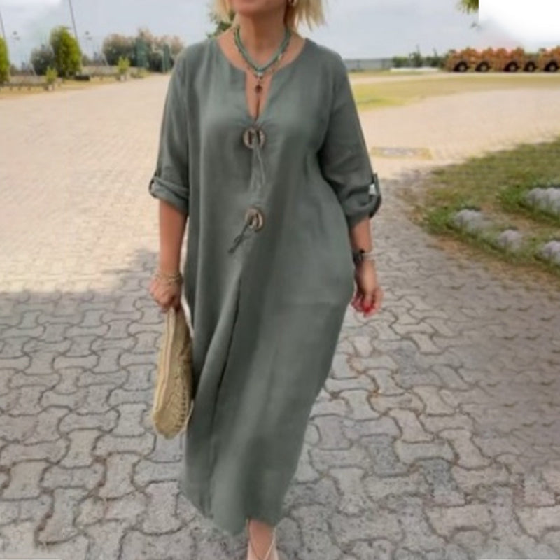 🔥Heißer Verkauf 50 % Rabatt🔥Lockeres Damenkleid mit einzigartigem Knopfdetail